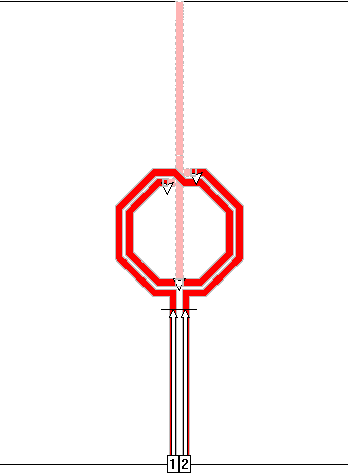 Since the actual metal analyzed by em is snapped to the grid, occasionally this process could introduce unintended shorts or open circuits. Sonnet provides a Connectivity checker which shows connections between polygons using these snapped dimensions. This allows you to check for shorts or opens introduced in the import. It can also be used to check for general layout problems. For a complete discussion of the Connectivity Checker, please see Connectivity Checker in the Getting Started manual