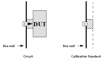 There are also cases in which the automatically determined calibration standard is too short. This can cause errors in your de-embedded results since the line must be long enough to allow the currents flowing on the line to exhibit a traditional TEM mode (see Feedlines Must Be Transmission Lines). A box-wall port with a calibration standard which is too short is illustrated below. Notice the length of the calibration standard is even shorter than the width.