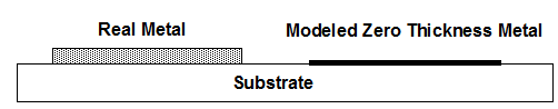 By default, a planar conductor polygon uses the Thin Metal model. A Thin Metal polygon is modeled as a 2D sheet of zero thickness as shown below.