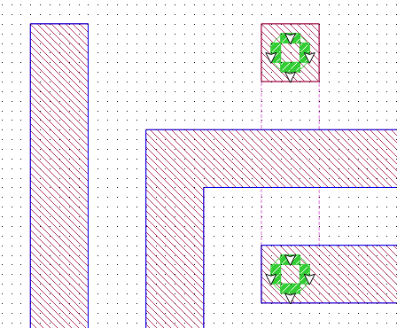 The next step is to add circular vias that will connect the spiral polygon to the underpass polygon.