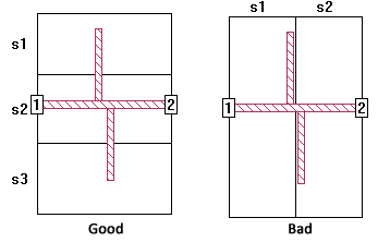 The following sections contain a series of illustrations, each showing the good placement of a Subdivider and its counterpart showing a bad (and in some cases illegal) placement of a Subdivider.