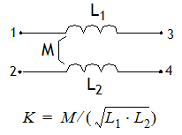 You may enter either the mutual inductance, M, or the coupling parameter, K. The two values are related by the equation shown above.