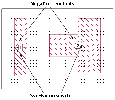 These two radio buttons allow you to specify to which polygon the negative and positive terminals of a port are attached. The radio buttons and their effect is illustrated below.