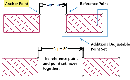 Adjustable Point Set: One or more points that move when the value of the dimension parameter changes. The adjustable point set includes the reference point, plus any additional points which move when the value of the dimension parameter is varied.